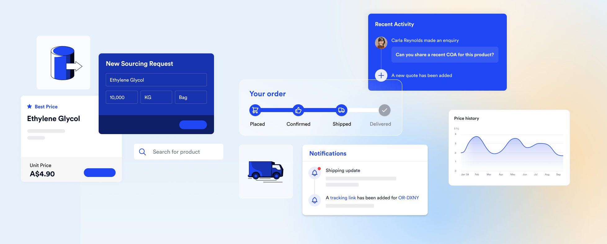 ChemCloud helps to digitise the three main parts of your procurement process - supported by AI Agents that automate key tasks like reading and storing documents and extracting information from emails.